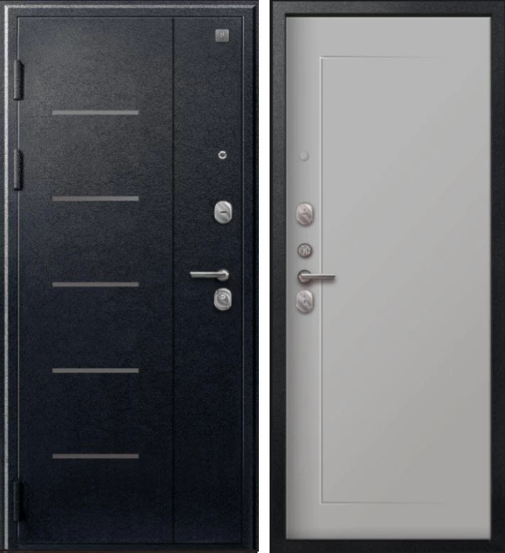 Надежная входная Дверь V-03 Черный муар - Кашемир сильвер премиум класса по цене 39 199 руб. Большая толщина стали защитит от проникновения в ваш дом, квартиру или коттедж. Используется очень качественная фурнитура: замки, цилиндры, ручки, защелки. Покрытие и отделка двери изготовлено под внимательным контролем производителя. Дверь имеет долгий срок службы и гарантию.